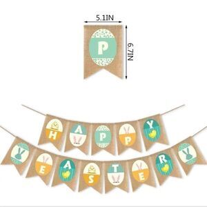 Burlap Happy Easter Banner - 2pcs Easter Bunny Rabbits Bunting Garland Flags Sign for Easter Decorations