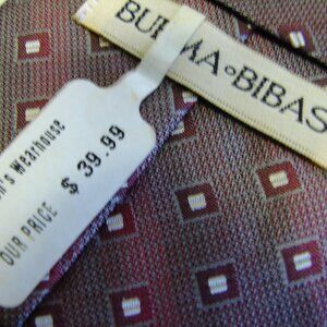 NWT Burma Bibas SILK TIE, 57", Small Diamond Print, Red Silver NEW USA MSRP $40