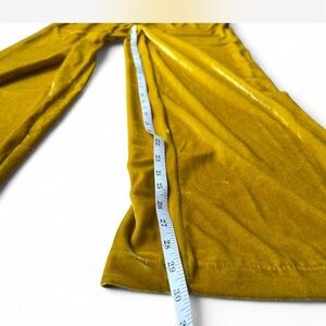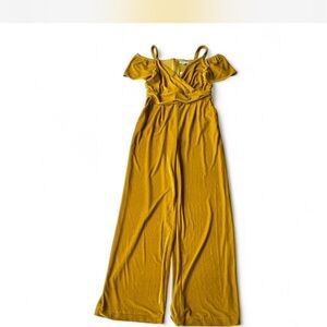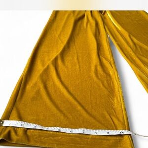 NWT ⚡️Burn Out Velvet Mustard Yellow Jumpsuit Cold Shoulder Wide Leg Medium