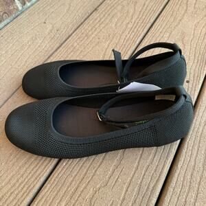 NWT Burudani Black Knit Removable Insole Round Toe Ankle Strap Ballet Flats 9