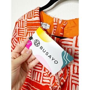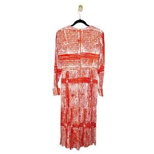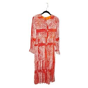 NWT Busayo Dele Orange Tribal Print Ruffle Collared Long Sleeve Midi Dress Large