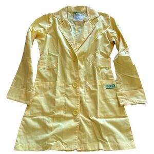 NWT Butter Soft Ledro Scrub Jacket Womens XS Yellow Lab Coat Nurse Uniform Retro