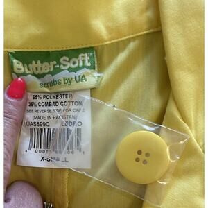 Butter Soft Scrub ledro Jacket Womens X-Small yellow Lab Coat Nurse Uniform Workwear Spa USED 0410