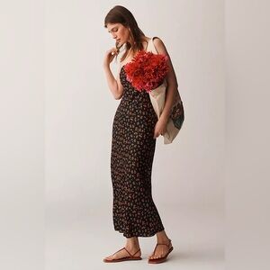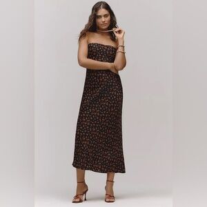 NWT! By Anthropologie Black Motif Satin Midi Slip Dress - Multiple Sizes