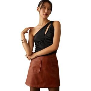 NWT By Anthropologie Black One-Shoulder Ruched Fitted Tank Womens Medium