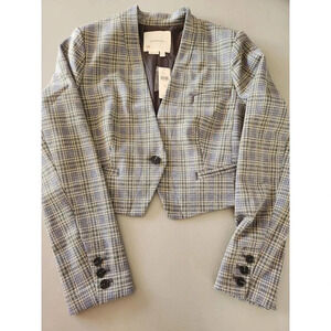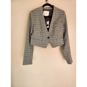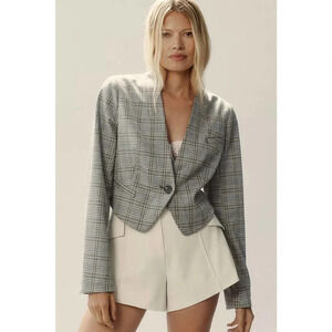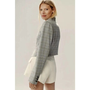 NWT By Anthropologie Hundstooth Cropped Knit Tuxedo Blazer Size US 10