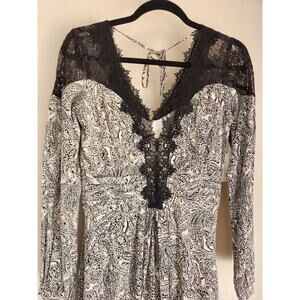 NWT By Anthropologie Lacy V-Neck Mini Dress US 6 White Black #G4402