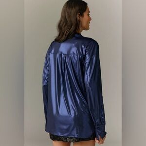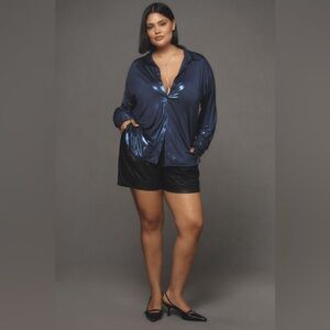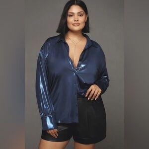 NWT! By Anthropologie Navy Shine Button Down Shirt - Size Large Petite 🏀