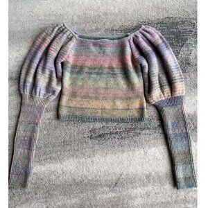 NWT By Anthropologie Off-The-Shoulder Puff-Sleeve Sweater Small Blue Motif Rainb