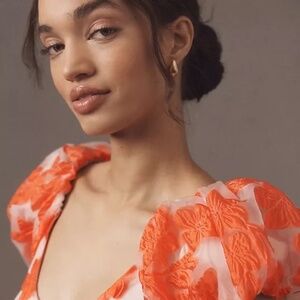 NWT By Anthropologie Puff-Sleeve Scoop-Neck Babydoll Mini Dress Sz L