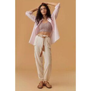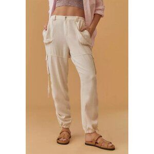 NWT By Anthropologie Relaxed Utility Cargo Pants Ivory Linen Joggers Size Small