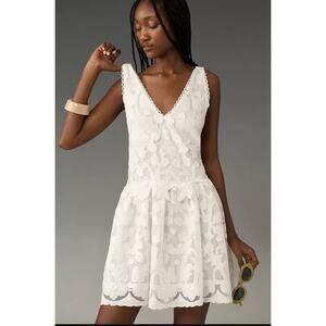 NWT By Anthropologie Sleeveless V-Neck Lace Swing Mini Dress $288 MEDIUM White