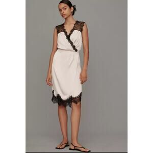 NWT By Anthropologie Sleeveless V-Neck Lace Wrap Midi Dress $168 MEDIUM Beige
