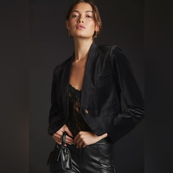 NWT! By Anthropologie Velvet Tuxedo Jacket in Black - Size 0