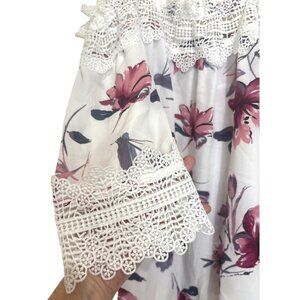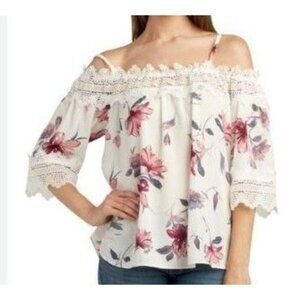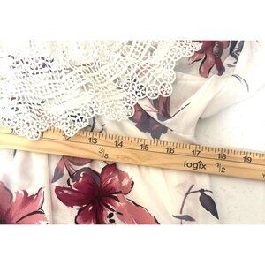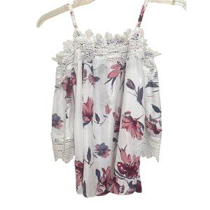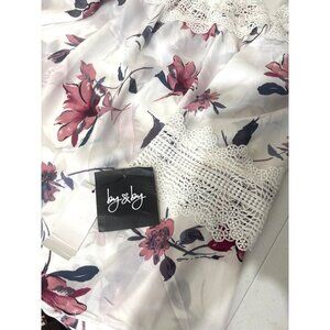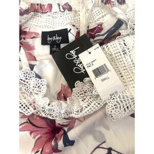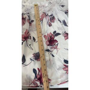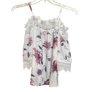 NWT By & By Floral Print Cami Blouse SZ Small Lace Trim White Pink Navy