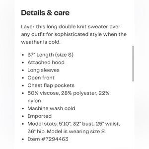 NWT By Design, Lola Long Double Knit Sweater, Black, XS