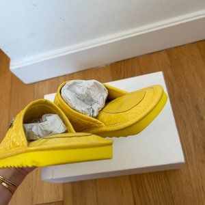 NWT By Far Ari Slip-on Slides Duckling Circular Croco Embossed Leather in Yellow