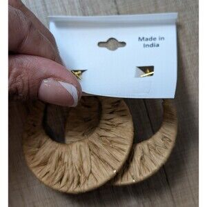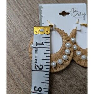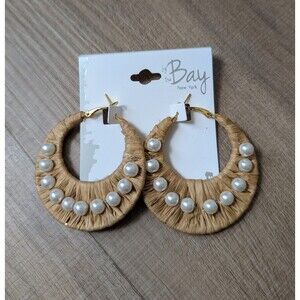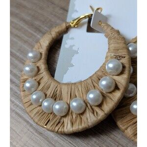 NWT By The Bay Rafia Hoop Pearls Earrings Boho Chic Coastal Resort Beachy