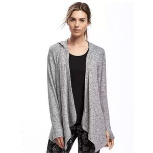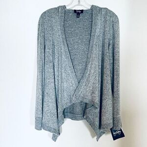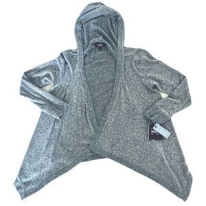 NWT By&By Sz S Marled Grey Hoodie Super Soft Asymmetrical Cardigan Open Sweater