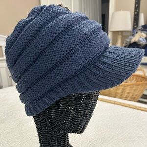 NWT. C. C. Blue Messy Bun/ Pony Tail Beanie Hat.