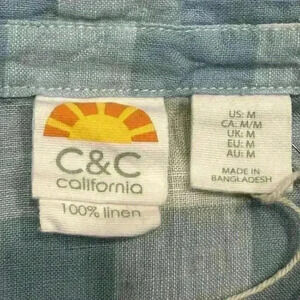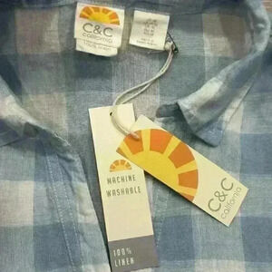 NWT C & C California Top Womens Medium Blue White Check Linen Relaxed Fit Summer