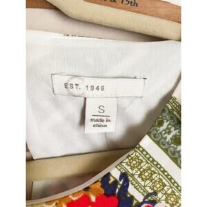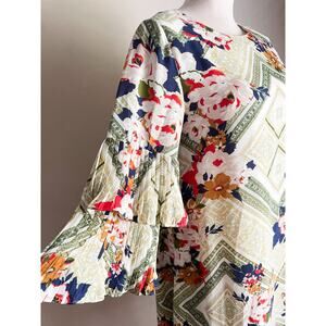 NWT C Est 1946 Flutter Sleeve Sheath Floral Dress. Beautiful print. Size small. Approx measurements length -35in, pit to pit -19in, hips flat -24in. Cream, blue,red,gold. Lined, Back button.