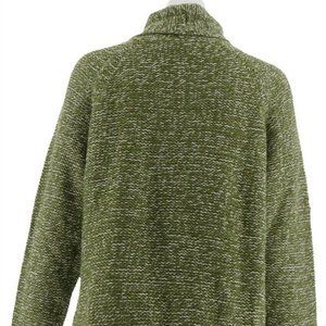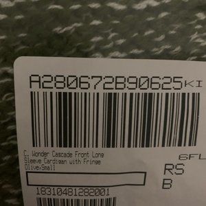 NWT (NEW IN BAG) C. WONDER CASCADE FRONT LONG SLEEVE FRINGE CARDIGAN SIZE SMALL. COLOR IS OLIVE GREEN WITH WHITE.