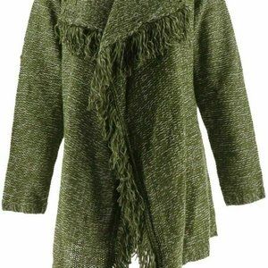 NWT C. WONDER CASCADE FRINGE CARDIGAN SMALL OLIVE