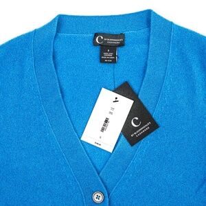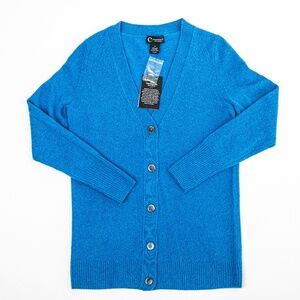 NWT C by Bloomingdale's Cashmere Grandfather Cardigan Blue Lagoon $188 - Size S