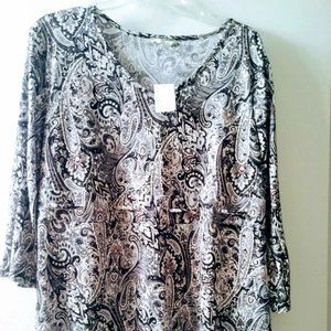 NWT C est 1946 Blouse/Top Black/White Paisley