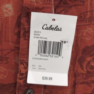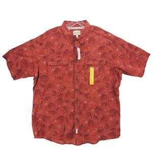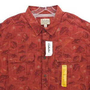 NWT CABELA'S Docksider Shirt Red All Over Fish Print Vented Size 2XL