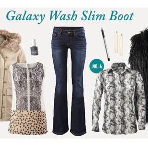 The leg-lengthening Galaxy Wash Slim Boot will be your favorite pair of jeans for years to come. This denim staple is the perfect match for daytime whimsy with the Ladylike Tunic and a crossbody bag in rich pecan hues. Step out at night with a color-popping statement heel and dramatic smoky eye.