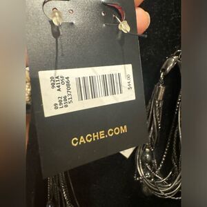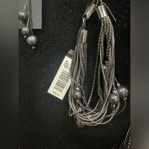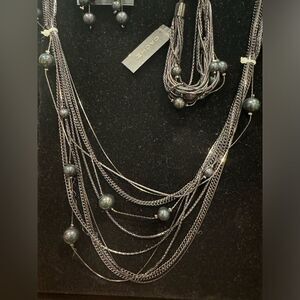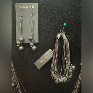 NWT CACHE GunMetal knecklace,Bracelet & Earrings Set with Black Pearl Accent