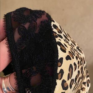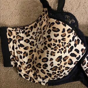 This Cacique bra features a striking animal print design in black and brown, complemented by black lace trim for a bold look. The underwire construction provides excellent support, while adjustable straps ensure a perfect fit. Mesh side panels. Ideal for those seeking both style and comfort in their intimates collection. Non smoking non pet home.