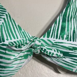 NWT CALIA Tie Front Bikini Swim Top Green Palm Stripe Tropical Print XXS Resort