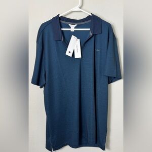 NWT CALVIN KLEIN Contrast Zip Polo Shirt Cotton Blend In Navy Size XXL