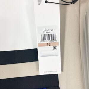 NWT CALVIN KLEIN Dress 12 Colorblock Royal-Blue White Beige Sheath Stretch