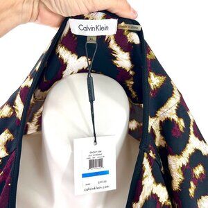 NWT CALVIN KLEIN PURPLE, BLACK, WHITE & METALLIC GOLD ANIMAL PRINT DRESS - XL