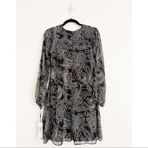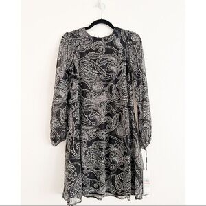 NWT CALVIN KLEIN Paisley Metallic Black Long Sleeve Chiffon Dress Sz 2