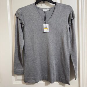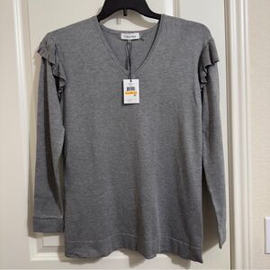 NWT CALVIN KLEIN V-NECK RUFFLE LONG SLEEVE LIGHTWEIGHT KNIT SWEATER TOP SMALL