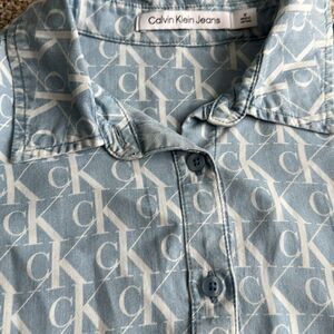 NWT CALVIN KLEIN JEANS MONOGRAM TENCEL BUTTON DOWN SHIRT