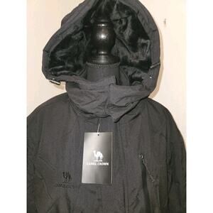 NWT CAMEL CROWN Mens Winter Coat Waterproof Ski Jacket Fleece Lining Black XL