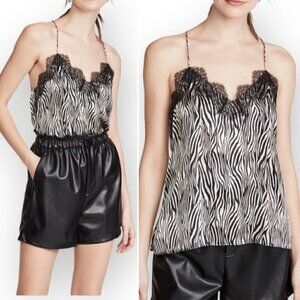 NWT CAMI NYC The Racer Top Zebra Print Lace Trimmed Silk Cami, Size XS