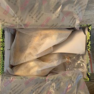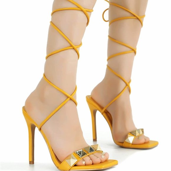 NWT (NEW IN BOX) CAPE ROBBIN AIGO GOLD STUDDED LACE UP HEELS YELLOW SIZE 5.5