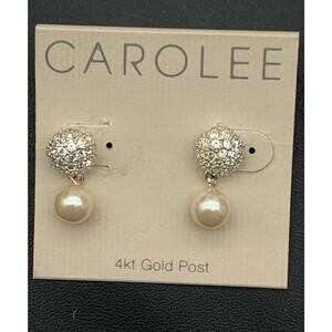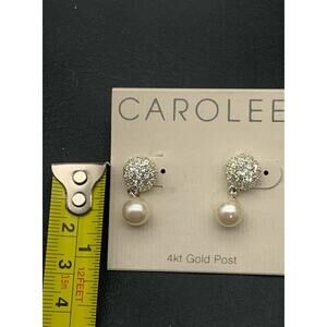 NWT CAROLEE SILVER TONE CZ & GLASS PEARL DROP EARRINGS 4kt Gold Posts