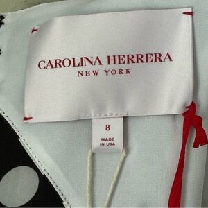 Size 8. This polka dot Carolina Herrera designer dress couldn’t be more chic and on trend for 2025! Brand new with all tags attached (paper hang tag has style information covered). Has brand tags attached and an additional paper hang tag that must be cut off. Why is this important? It’s another guarantee that this dress is brand new and has never been worn! I want to point out 2 minor things: 1) 2 stitches on front bodice seem to be more noticeable- see photo number 14 2) there appears to be a TINY distressed area on the BACK of one sleeve. Not noticeable because it’s on the back. See in photos 15 & 16 in size compared to a dime.