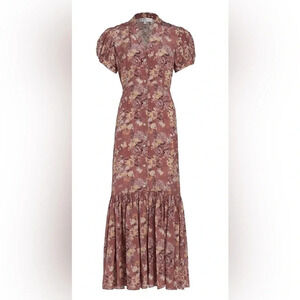 NWT CAROLINE CONSTAS Nancy Floral Silk Puff-Sleeve Maxi Dress Ex Small Authentic