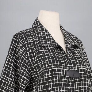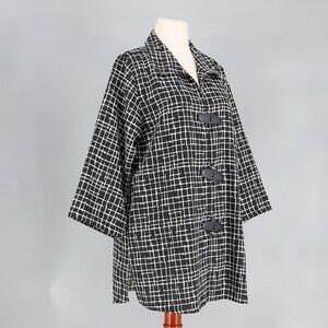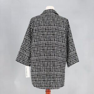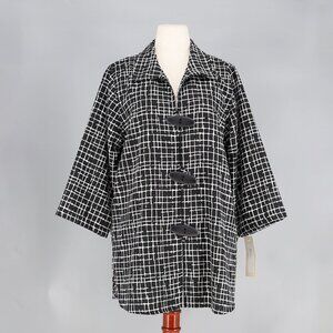 NWT CAROLINE ROSE A-Line Grid Print Jacket Oversized Button Black White Size L
