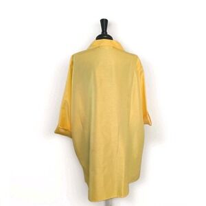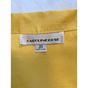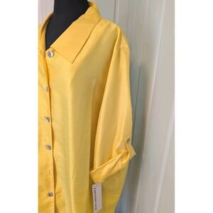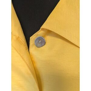 NWT CAROLINE ROSE Yellow Raw Silk Like Shirt Tab 3/4 Sleeve Metal Buttons USA 3X