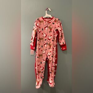 From “Just One You” made by Carter's, these one-piece Christmas Santa and reindeer pjs bring lots of holiday spirit to bedtime! Made with soft fleece to keep her cozy, and easy zip-up style so she's ready for bed in no time. Plus, built-in gripper footies mean less slip-and-sliding! These cute footed pajamas are flame resistant without chemical treatment 💕😍💕